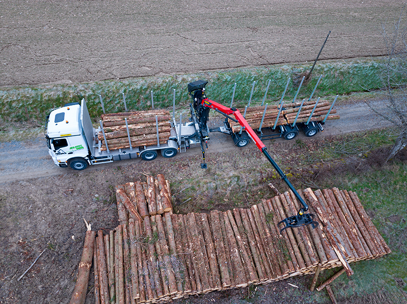 Ce véhicule, conçu pour optimiser le transport de bois court, est équipé d’une grue PALFINGER EPSILON de Génération 3. Cette nouvelle génération de grues forestières est conçue pour être encore plus solide et plus performante sans être plus lourde. Le modèle qui équipe le nouveau PALFORET de notre client, une TZ17, offre donc des capacités impressionnantes avec 17T/m de capacité de levage et une portée de 9.80m.